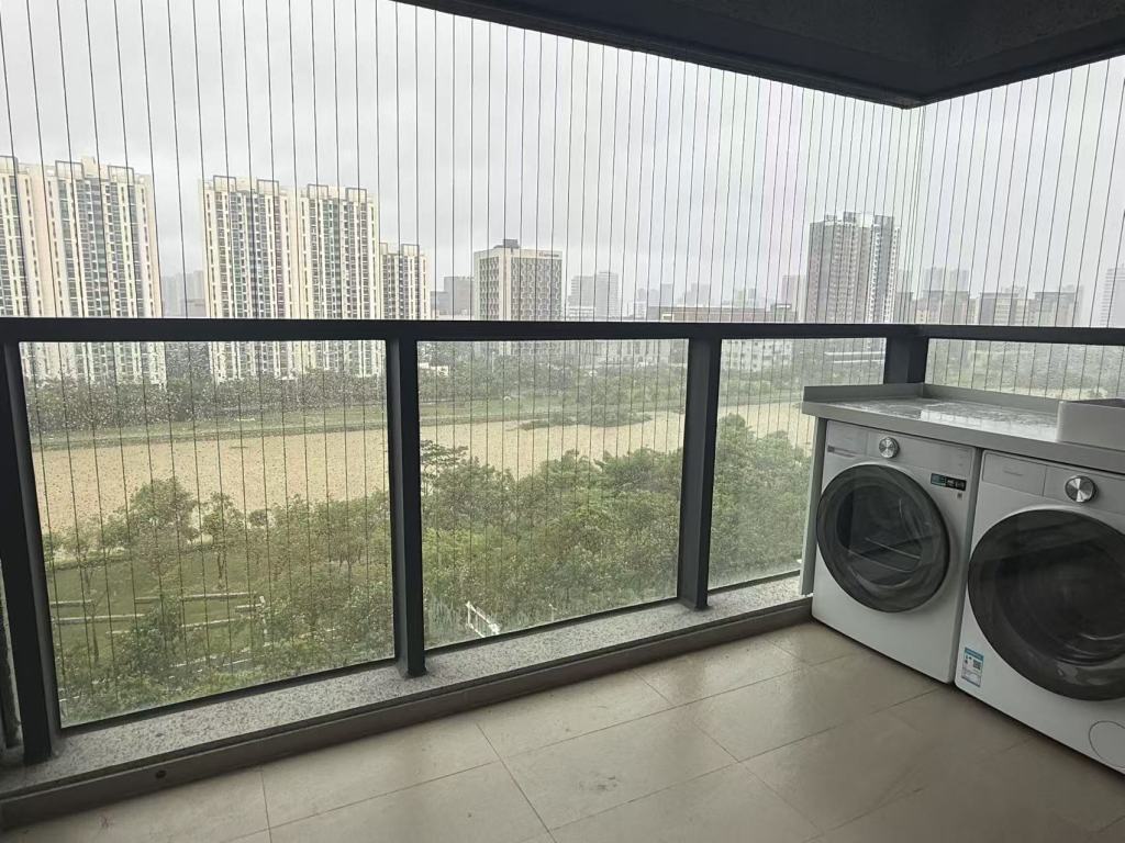 台风来临前,张青把阳台上的绿植搬回了室内,阳台上只剩下洗衣机。